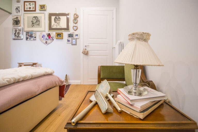L’ambiente è molto accogliente e ogni parete diventa una tela sulla quale trovano posto: ricordi, fotografie, libri, quadri ed ogni cosa che rende la casa un rifugio sicuro e in pace rispetto al mondo fuori.