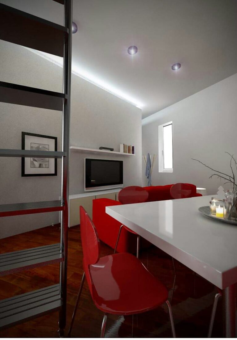 La ristrutturazione ha visto il semplice inserimento di un setto atto a delimitare la nuova stanza lasciando il soggiorno vivibile ed ampio.