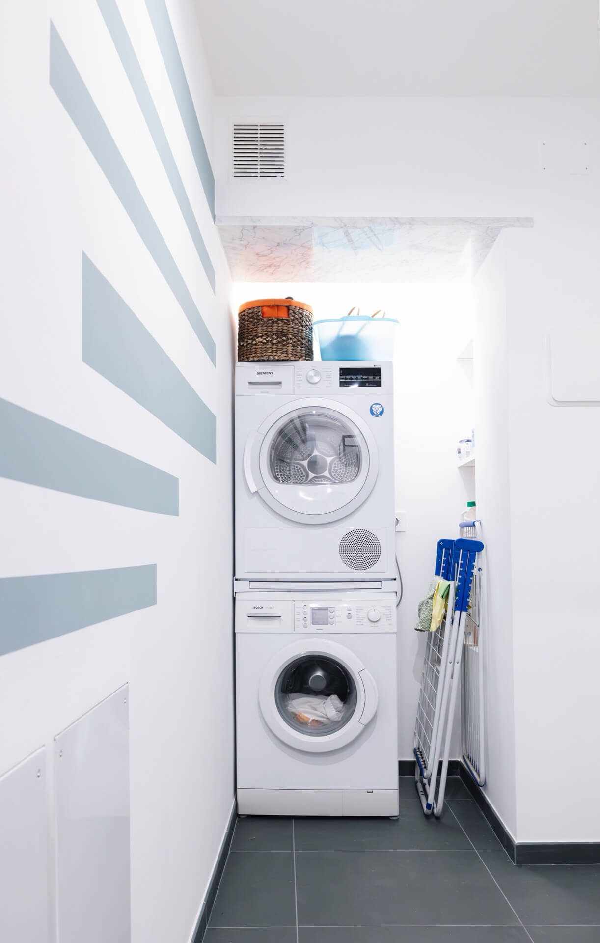 La lavanderia non è più un elemento “invasivo”, ma una presenza discreta e integrata.