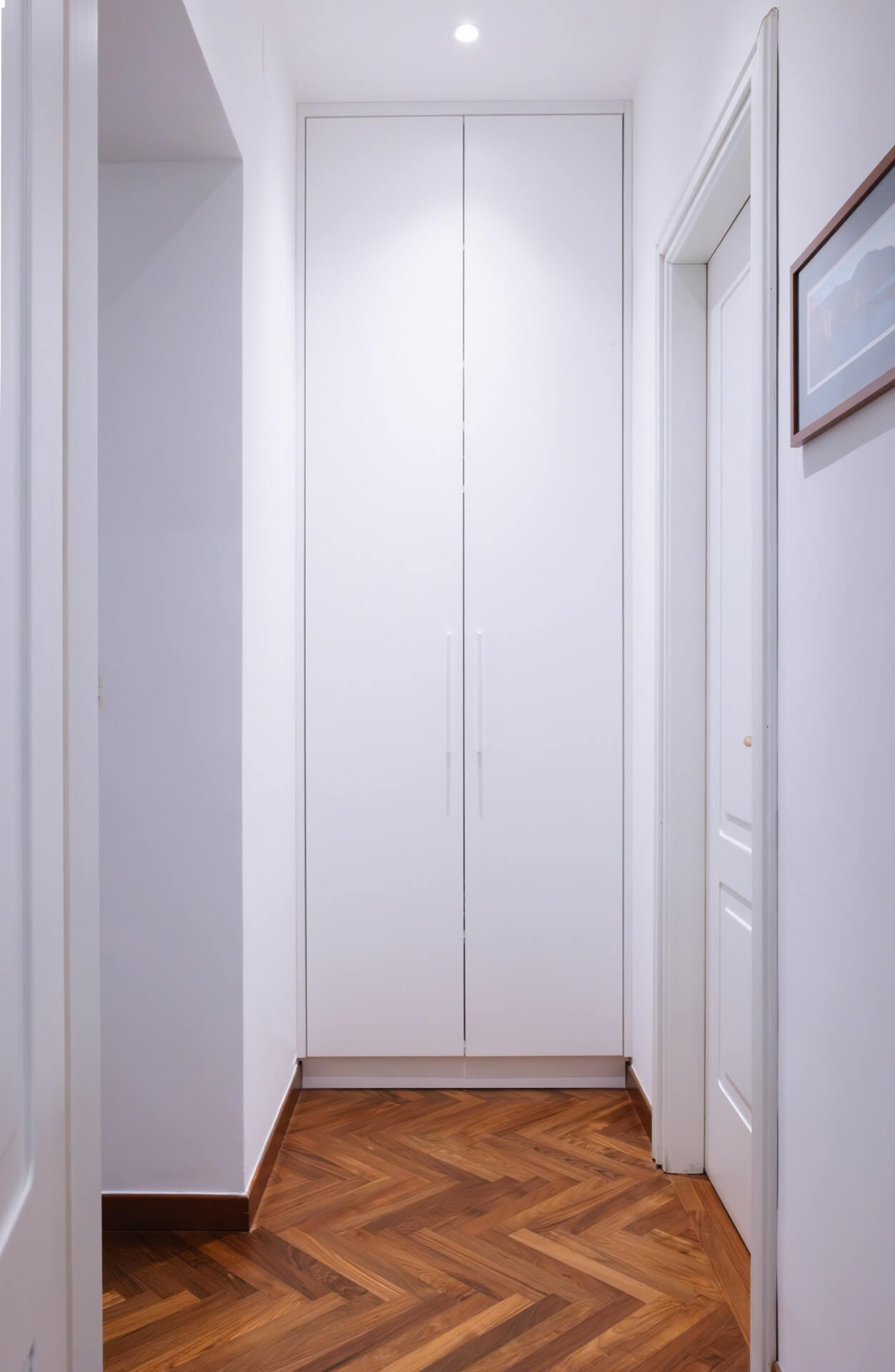 Sono stati restaurati, il parquet storico in legno, riportato alla sua profondità e matericità originaria i pavimenti in graniglia decorata dell’epoca, veri protagonisti della zona giorno.